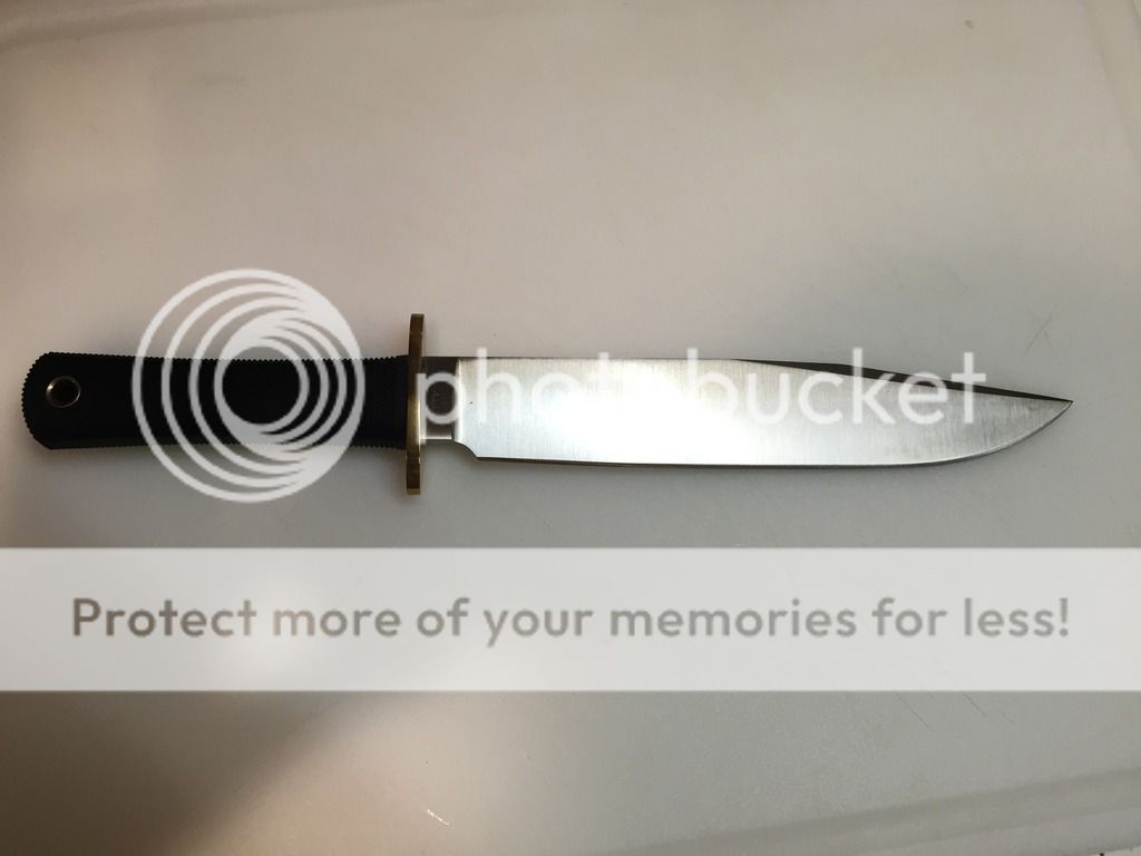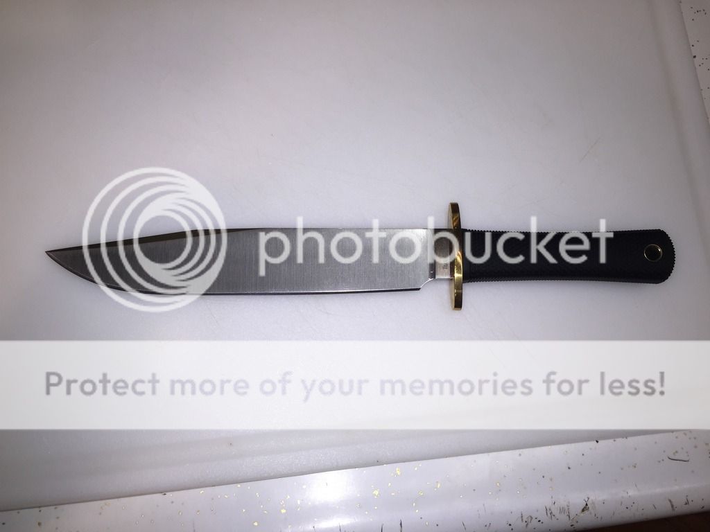 I have an O1 Trailmaster for sale or trade. It has some very light darkening towards the end of the blade from cutting pizza and some very light scratches. The factory edge has been stropped and is sharp! Comes with factory sheath. I apologize for the poor pics, I will get better ones tomorrow. Asking $110 shipped in the U.S.. Only trade I am after is a 3V Master Hunter.
