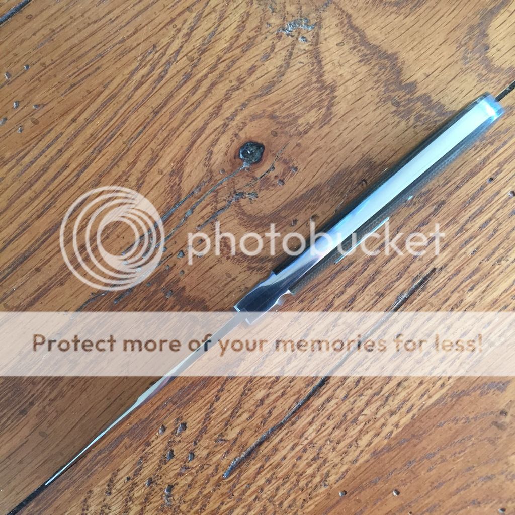 Knife has been carried but is virtually unused and has not been sharpened. It does have a minor scratch on one liner on the butt of the knife which I have attempted to capture in the last photo. Back spring is perfectly flush in open, close and half-stop position.