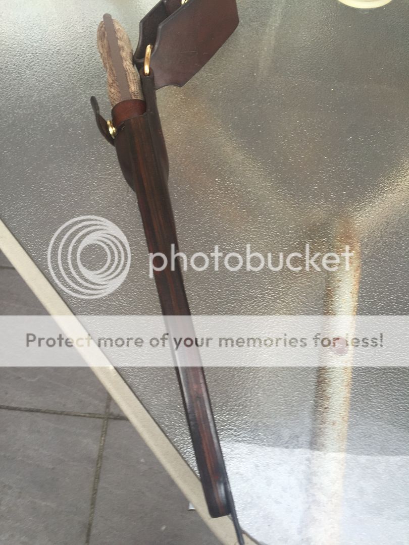 Cane toad inlay. I don't own a sheath with inlay and as far as I recall I've never helod one for longer than 30 seconds.