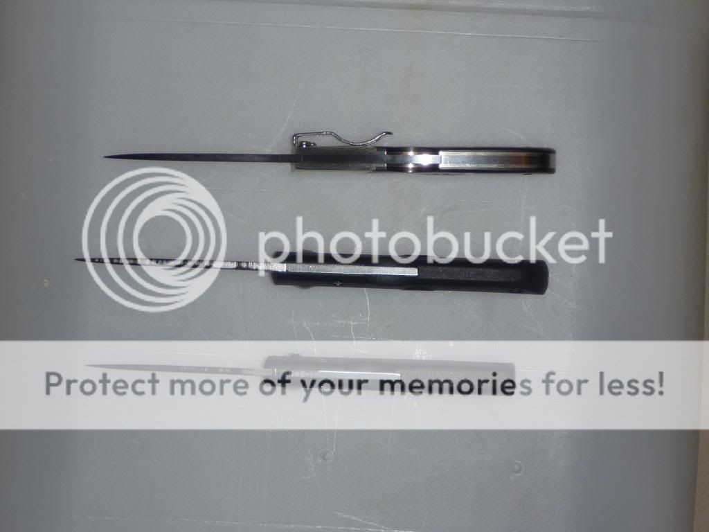 The DPX HEAT/F, despite the black blade (well, at least it won't glint when I try to slice a sausage or something) looks appealing, but it is about $50 more than I'd like to spend. The Fallkiniven U2 looks promising. I had a U4 but it was too small. I'm also a little put off by the convex edge, which I don't seem to be able to come to terms with, and seem to have defiled my little fixed blade on my Sharpmaker. Perhaps the Enzo PK70, though the blade is stated as 2 5/8" ... maybe the edge is less than 2.5". Now seriously though, is it going to get measured?