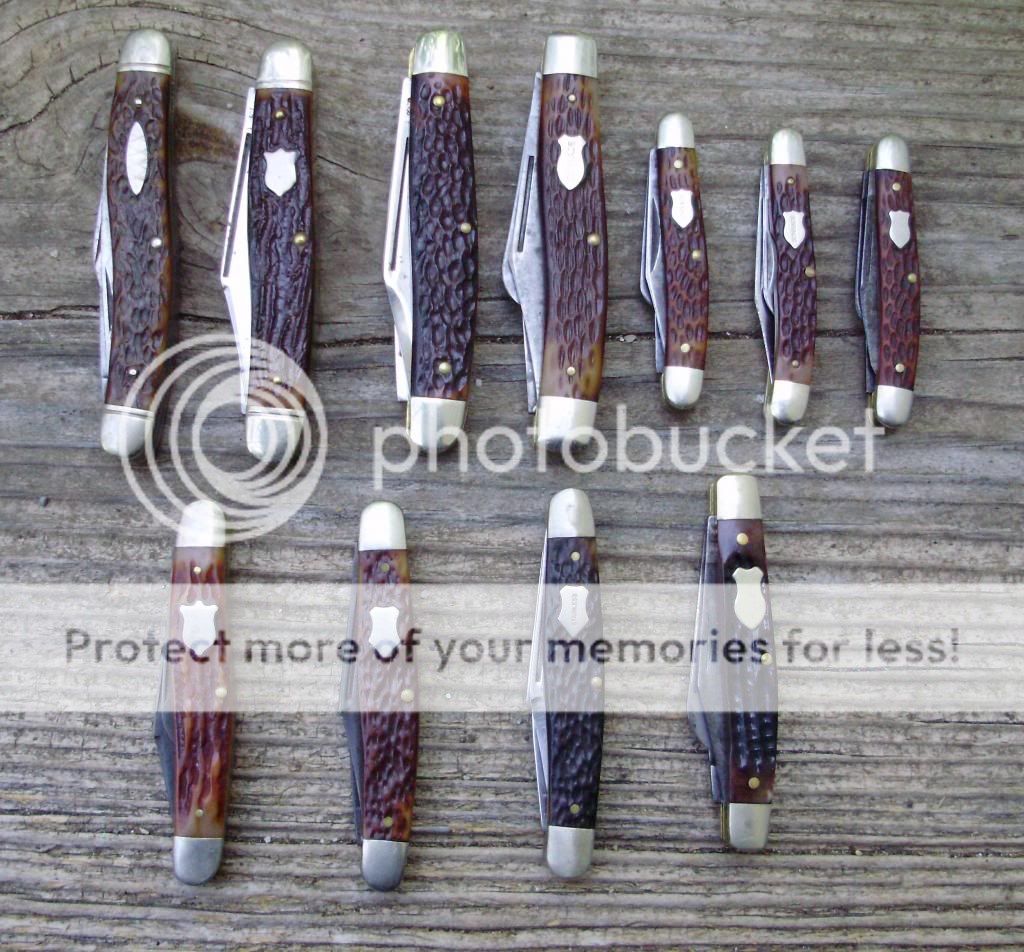 Bottom Row: Camillus, Western, Western, Utica - this one is bone not delrin and is a recently made knife.