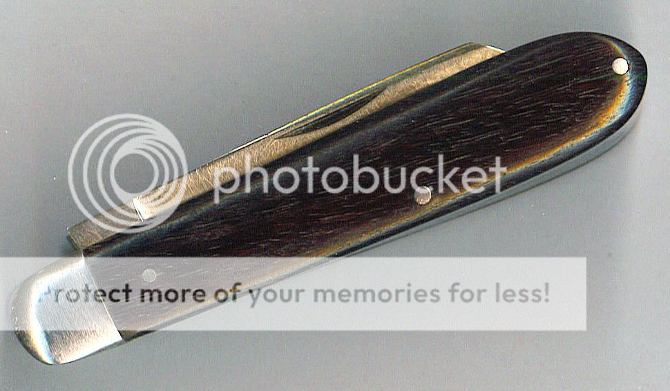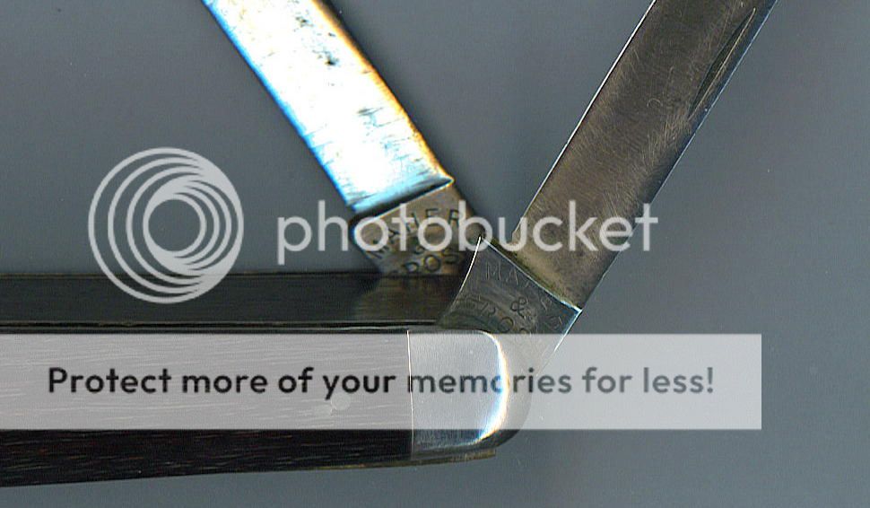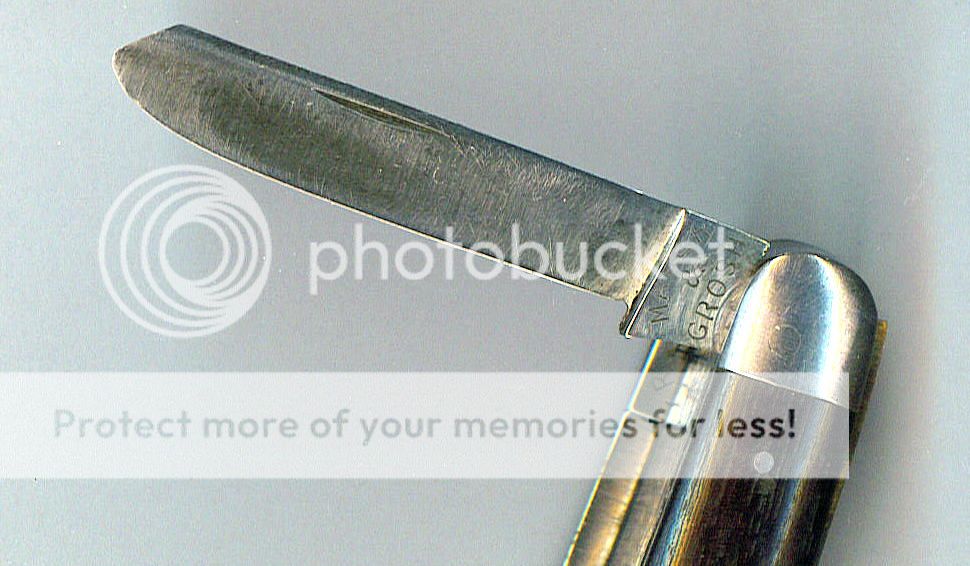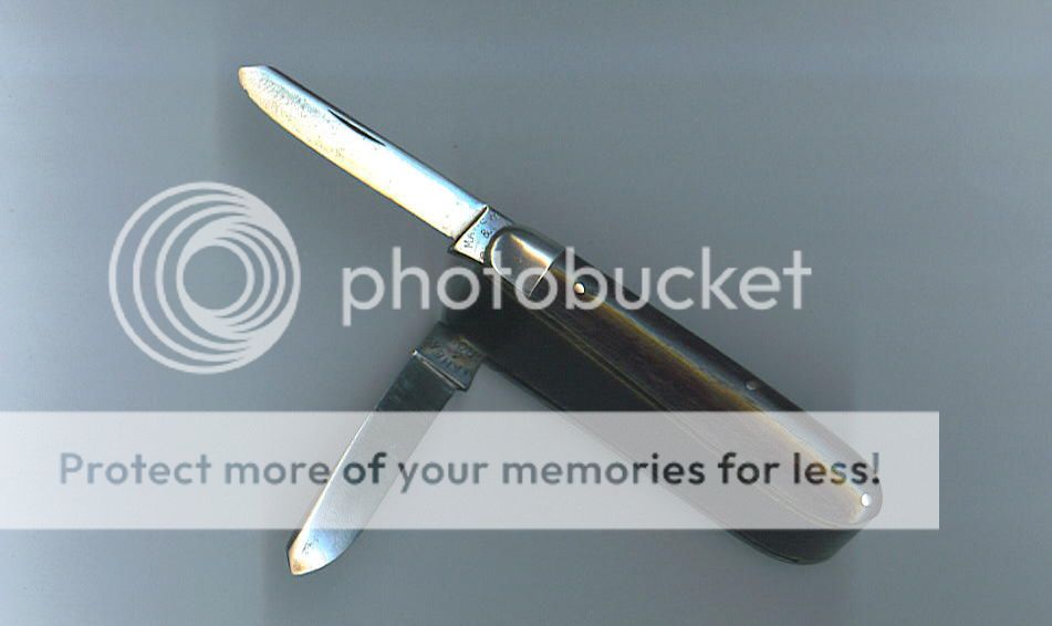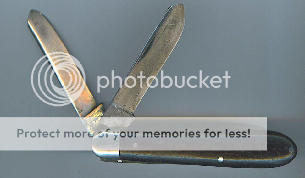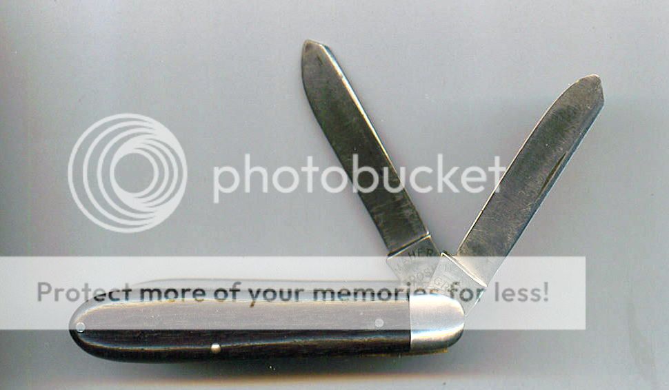 Here is a very old Walden Knife Co. 3 5/8" Jack. It has full blades but was put away many years ago in a damp place. It took a lot of effort to get the rust off the blades. The pen blade has an arched Walden stamp the only arched stamp I have seen on a Walden blade. Nickel silver bolsters and shield look new. To quote Neil Young "Rust Never Sleeps..."