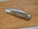 Fantastic! That bone doesn't even look all that pocket-worn. You must have a time machine.Picked up this old Utica teardrop this week, I think this is an early one, both blades have curved Utica tang stamps, hammered pins, great bone and a very unique profile spear blade with a very wide pull, lot of interesting features on this jack.