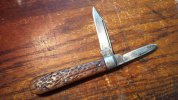 The United Cut Co I posted on Carl's Porch thread yesterday but have some better pictures here, like I mentioned, that was one of the many A Kastor & Sons trademarks c.1908-1922. The Clark Bros knife I bought just to inspect the tang stamp and when I got it, I couldn't believe how much steel they packed into such a little knife, no wonder the poor pearl burst at the seems, LoL