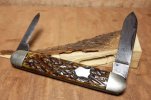 A Schrade Cut Co Harness Jack with Deep "HOLYOKE BELT C.O. stamped on the main blade. Blades are absolutely solid, with the main centered in the well. Half stops that are crisp with flush springs in closed, half and open positionsPerfect peachseed bone with fantastic color and no chips or cracks. To my surprise it arrived with the most perfect convex edge that just slices through thin receipt paper