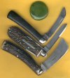 Current state of the sheepsfoot 2 blade jack collection, not an easy pattern to find, 2 Challenge, a Catt, a Schrade Cut Co and the Clauss.