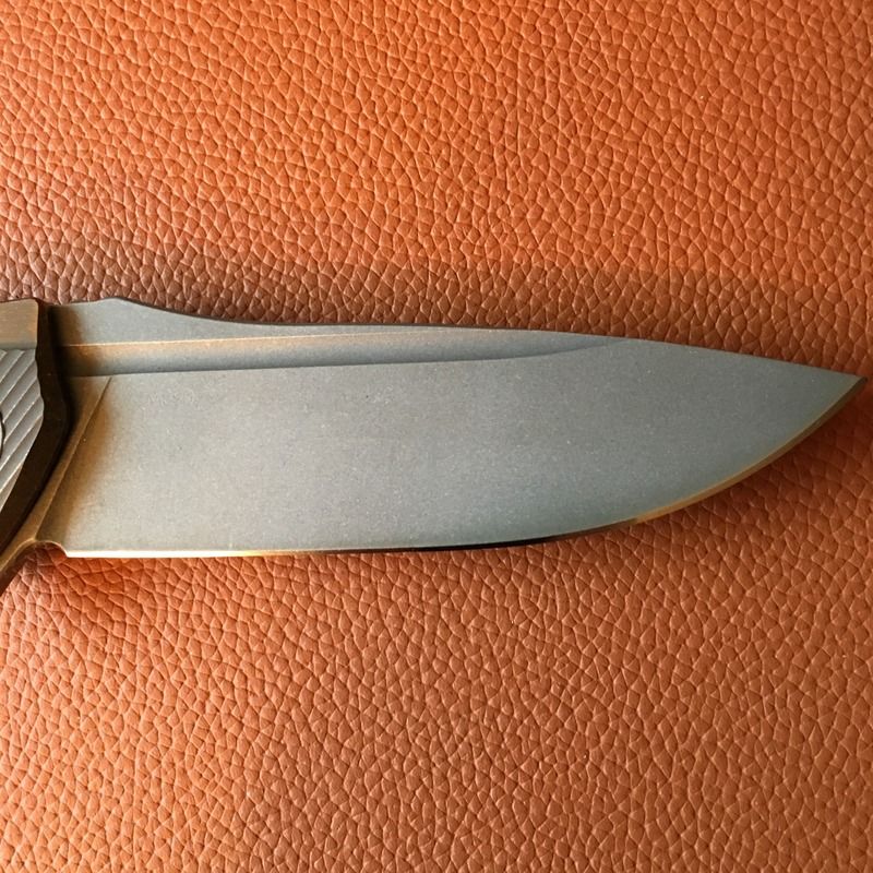 Bone stock it sells for 399.00 and this one Just recently had the clip and ti-scale anodized bronze and blade acid stonewashed by previous owner .