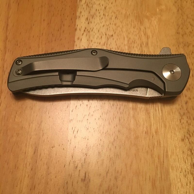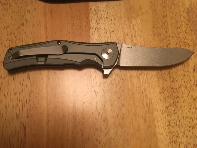 Factory razor sharp edge untouched , lightning fast flipper and actually the fastest and smoothest flipper I've ever owned and doesn't pinch your finger like some when flipping, a very well designed and executed knife IMO . Rock solid lockup with blade also dead center .