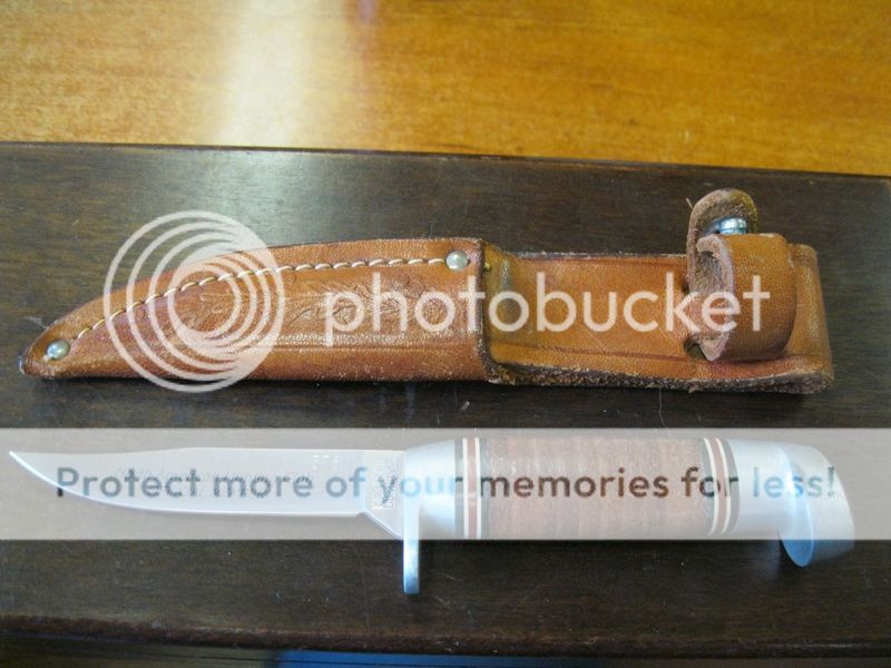 This is an older Western knife in great shape. Knife was never used the sheath shows a minute amount of wear. Excellent smaller Knife.35$ shipped. A great deal for sure.
