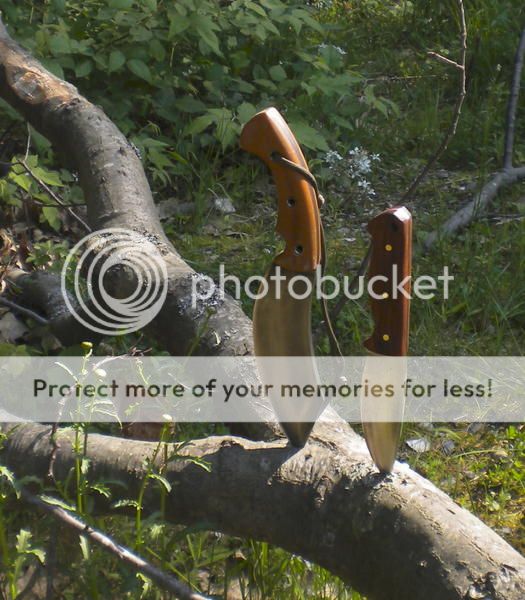 I tested the edges on all 3, on some dried bamboo I have...first I shave with them, and cut paper, then go after the bamboo like a mad man...if anything happens to the edge at all, I am keeping the knife, or at least its going back in the forge for another quench. These all did fine. Bamboo is pretty hard stuff, so I trust these edges. The smallest hidden tang, I also put in the vice, and tried to break it...I really like 5160, man, its strong stuff.