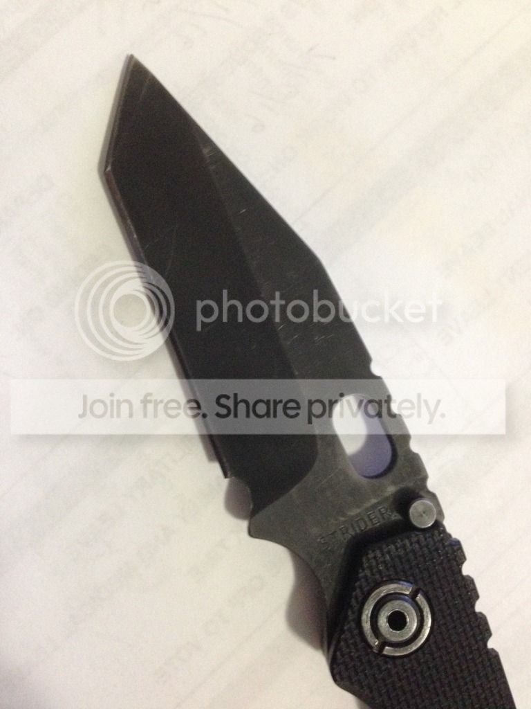 Perfect example of a strider- perfectly centered, smooth - easily flicks open and the blade drops free when the lock is released. Locks up rock solid in all directions, new lock geometry. Lock up around 50% and hasn't moved. great edc but I have a Smf CC that I prefer now and need money more then I need two striders