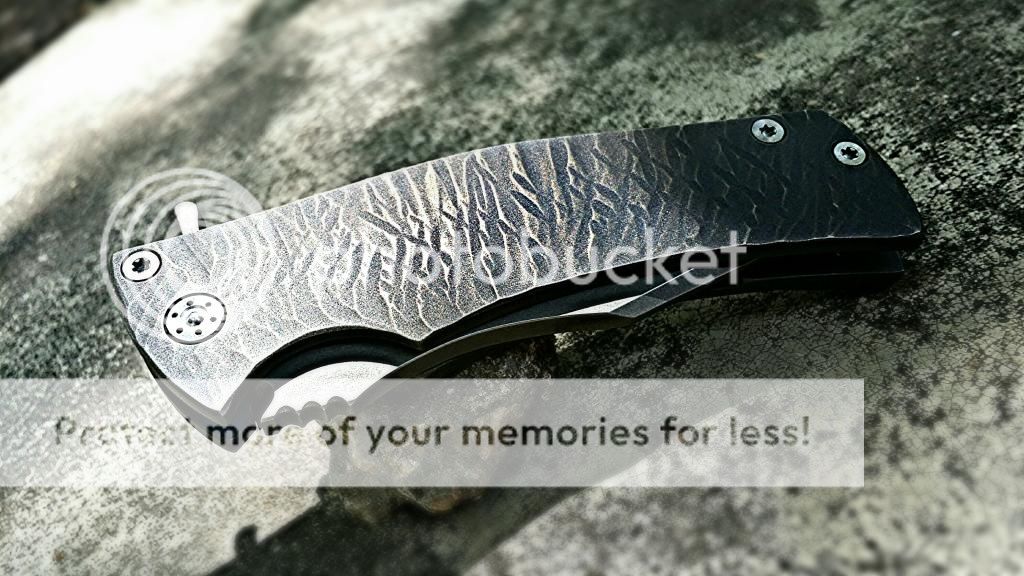 Up for grabs is Ferrum Forge Archon prototype #1. Hand made by Elliot, this knife has all the goodies - steel lockbar insert, Hoback rolling detent, bearings, and Elliots awesome Elmax. Solid in all directions, perfectly centered, and fires hard. 3.5" blade and beautifully sculpted show side and clip. Few snail trails on the back. TRADED