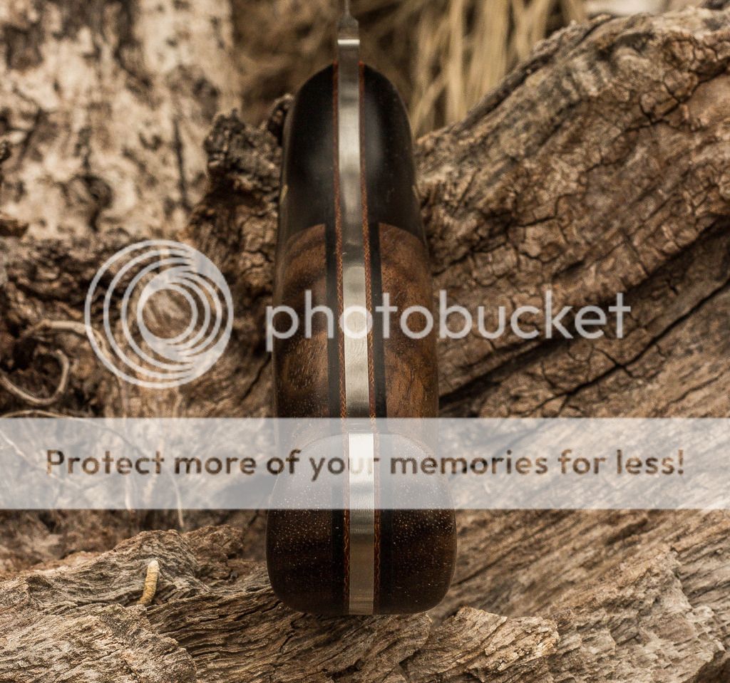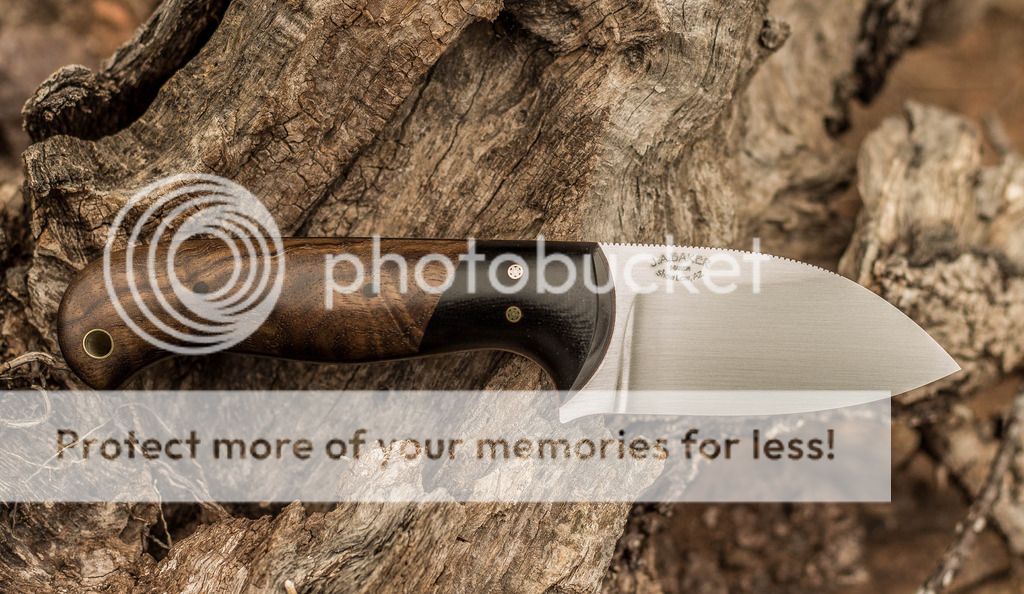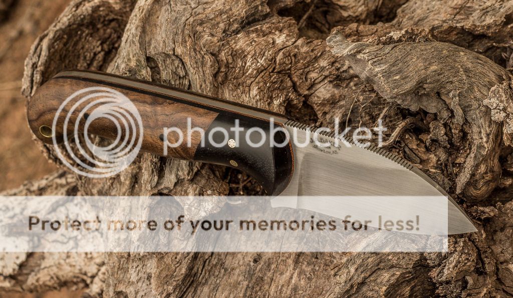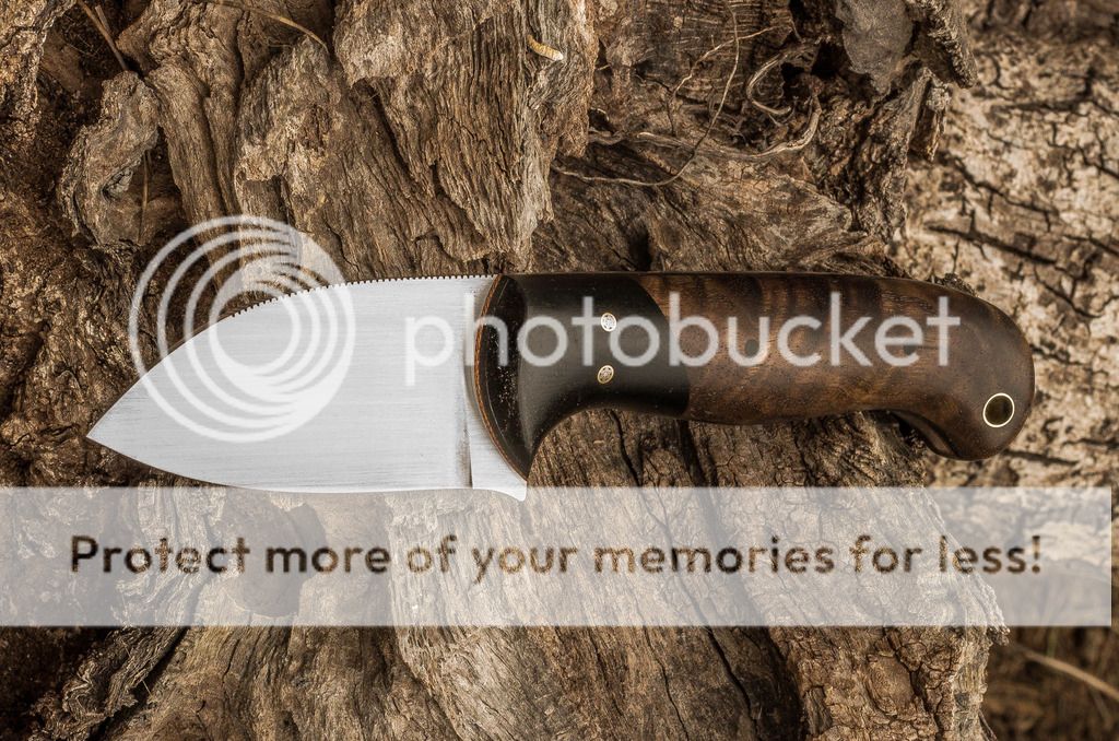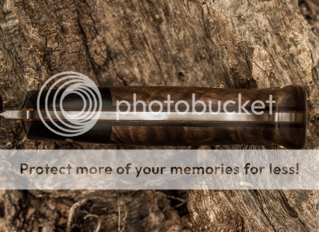 I just finished this one-off design for a customer. It features a Sheepsfoot style blade with a satin finish in 154CM stainless. The handle has stabilized figured walnut with black G-10 bolsters over black and brown spacers. Brass mosaic pins and black Micarta pins hold it all together. This one was ordered without a sheath. Please forgive the dust on the knife from the log. I didn't see it when I took the photos. Thanks for looking, Jeff