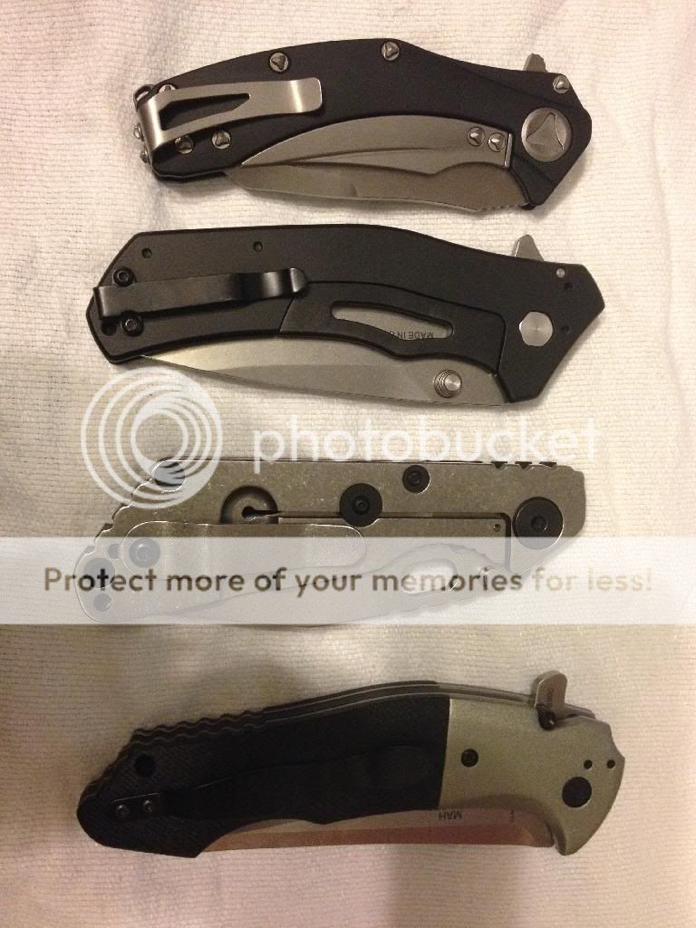 4- crkt mah eraser. SOLD--LNIB with papers and spare custom made clip (stock clip currently installed) awesome knife, extremely comfortable in the hand, fast flipping action, perfectly centered blade, early lock up. $60 net SOLD