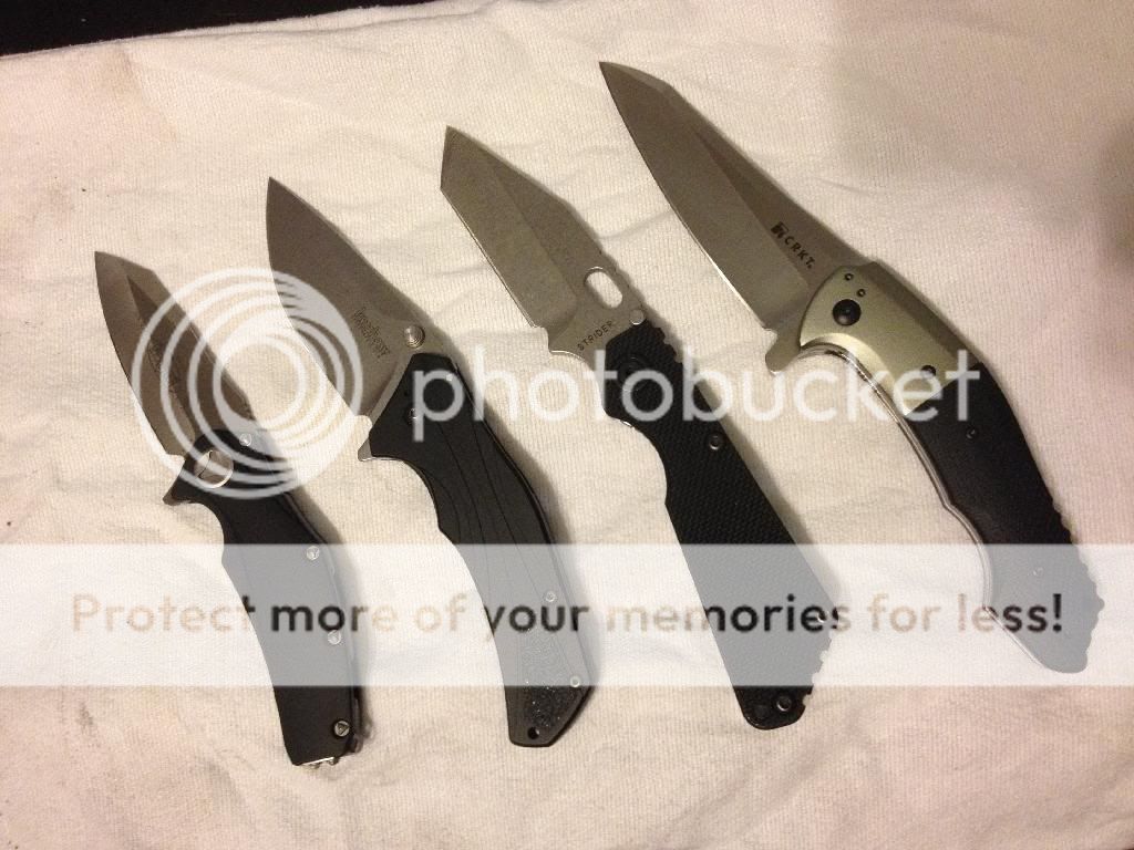 3- kershaw knockout- great condition "user"- perfect centering, early lock up. Added some grip tape to help get it out of the pocket. No marks / scratches on blade or handle. Comes with box and spare torsion bar. $40 net
