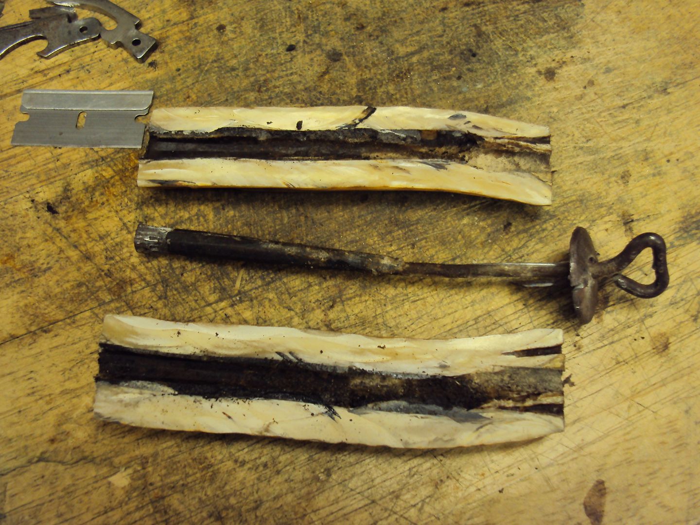 After I assembled the knife, I didn't like the blonde of the bone. I decided to put a little color into it. I just hope that it wasn't too drastic of a change for Jon.