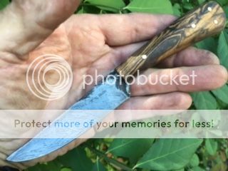 One of the first knives that I forged from a wire rope with an unfortunate hammer blow. Everything welded nicely and the divot will not affect the use of this little knife. It's been on the back of my workbench for months and I thought someone might make use of it if I offered it at a fire sale price.
