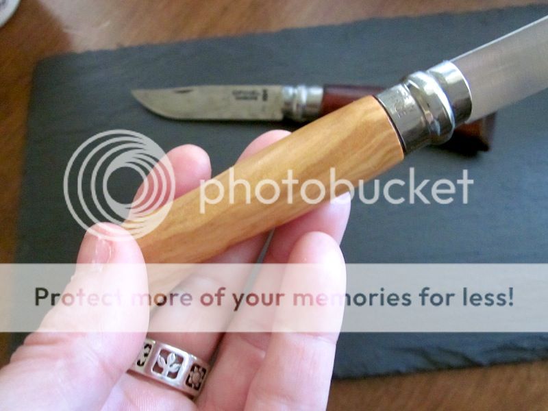 Part of my French Quarter collection, I've had the #8 Slim Ebony for a while now, love it of course ! today had it at work, showing a fellow there how cool it was and HOW sharp it is, he was stunned he said " you could shave with this!" yep ya could...move forward tonight when I get home, a package was waiting for me, a lovely Olivewood version, such a opposite in colour I was inspired to take some photos...as I was setting up for the first shot, blades open, OUCH as I barely, oh so barely hit the blade with my right index finger it sliced me a nice one SO easily, at first I was a little happy it was so sharp, but then it wouldn't stop bleeding lol but still, that thing IS sharp, the Olivewood is gaining as I tuned her up on arrival too but haven't taken her to the Shaptons yet...I'll wait on my finger to mend...