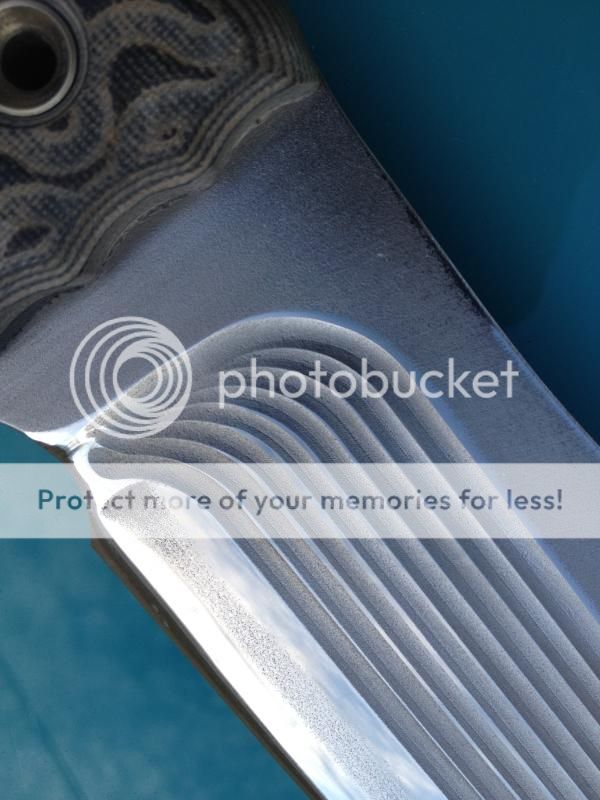 As for the edge, it's seen a lot of action including home tree pruning, felling tree's and also battening through rusty bolts on my parents Anderson Air-Raid shelter which we excavated from their garden last year (because, well, the Busse can!). I'll handle the edge myself which is a convex I put on there a few years back. I lent it to my father a while ago and he accidentally left it in the garden so that explains some of the weathering I guess.