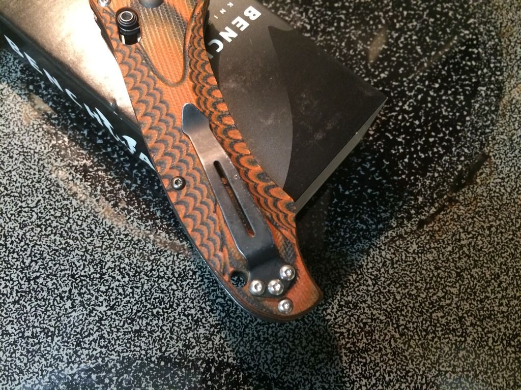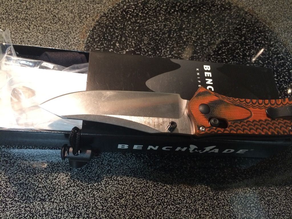I am selling the cutleryshoppe exclusive benchmade rift in orange. The blade has a scratch towards the tip of the blade that is not super noticeable/deep. Also, some of the hardware has been replaced for silver hardware. This knife is fully functional and is an amazing user blade. Smoothest open/close of any Benchmade knife that I have ever had.