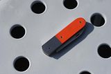 Just finished for a client. Folder with stainless bolsters, integral liners, orange G10 handles with red G10 liners, D2 blade. Handmade pivot screws, phosphor bronze bushing, mill reliefed liners.