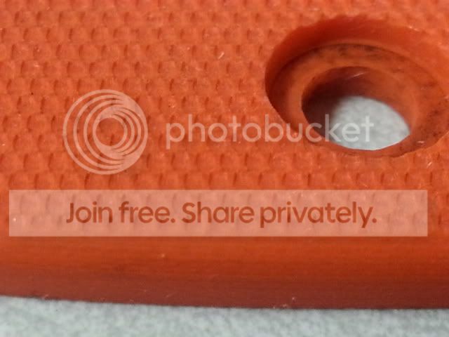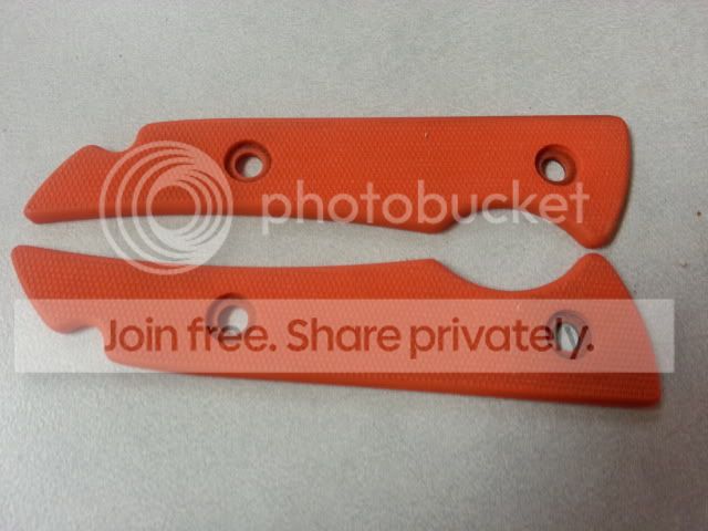i have orange fixed blade skyline scales, these are off a factory knife. only on it for a few hrs. they are a little dusty but in great shape. the screws left some color in the holes.