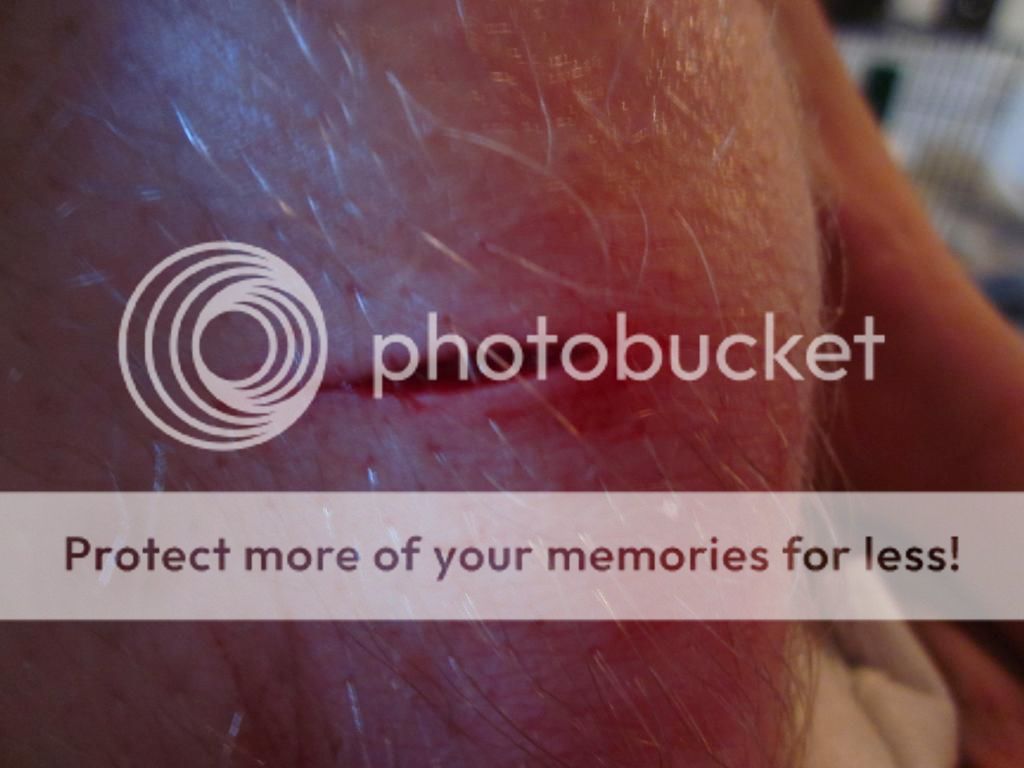 I gave myself a pretty bad cut about an hour ago. I was doing some wood cutting with the little chunk to see how it performed with the grind I had on it (Pretty well BTW) and I had it in a reverse grip pinching the handle and part of the blade cutting towards me, which sounds stupid but I was doing very short cuts and wasn't putting a whole bunch of force into the cut. Well I got a bit distracted and ending up slipping and slicing part of my knee wide open:grumpy: