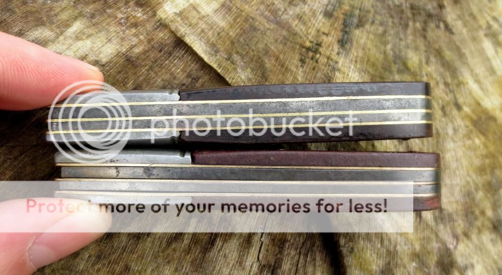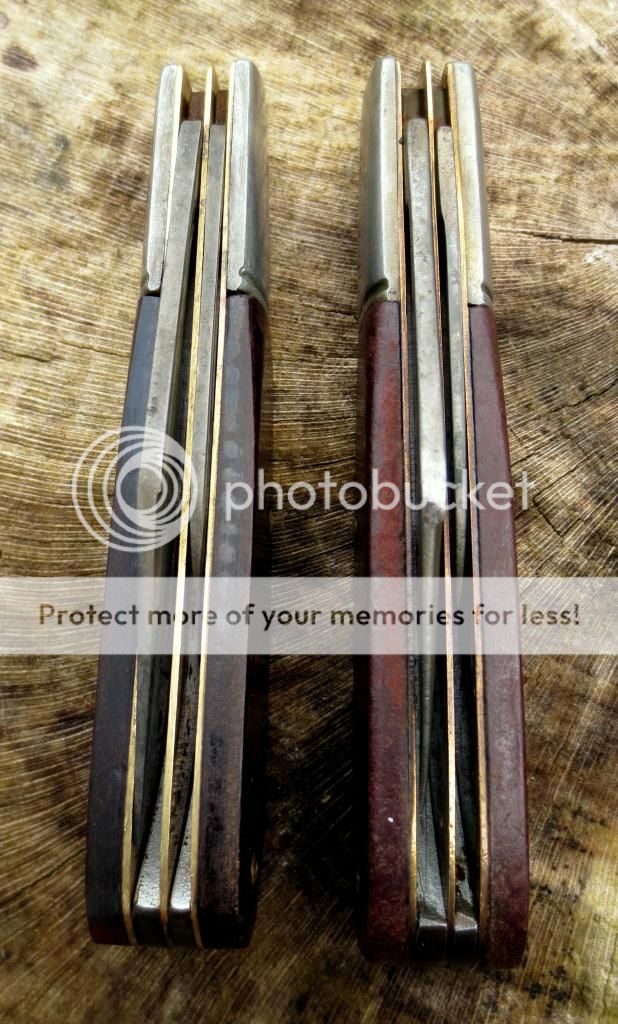 Also notice the sweet belly on the top blade, whereas in the lower it has been mostly sharpened out (I suppose).