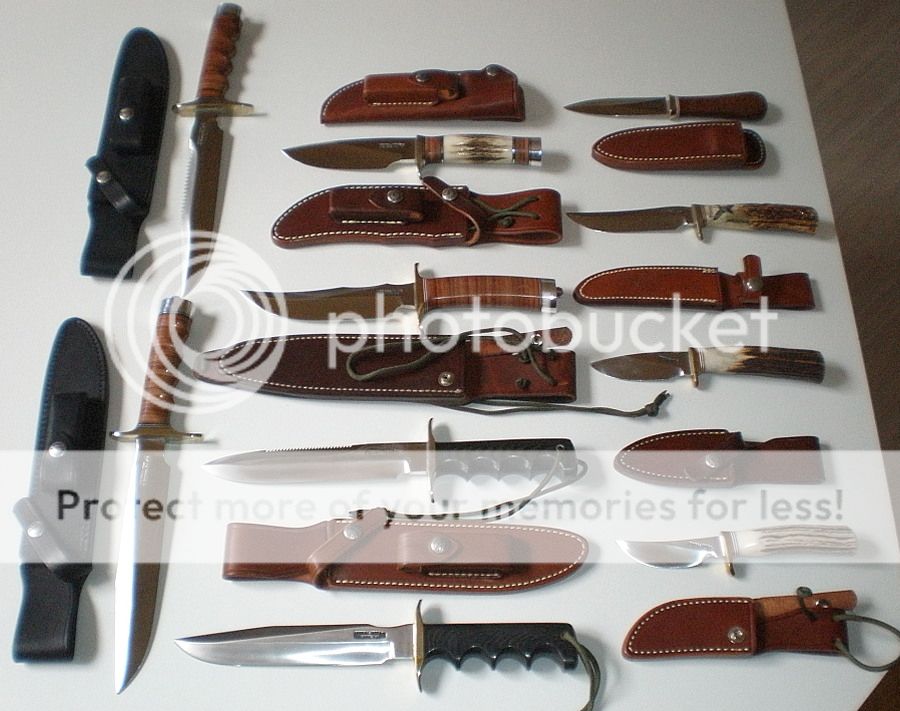 The first pic has various handle materials for the ubiquitous Skeleton knife.