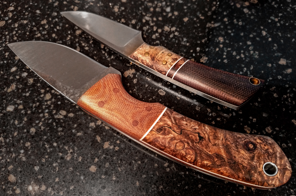 This Trail Hand is hitting a lot of marks for me in terms of weight, handle to blade ratio, out-of-box edge sharpness, symmetry of scales, flow of the tapered tang, and knock your socks off spalted maple burl!