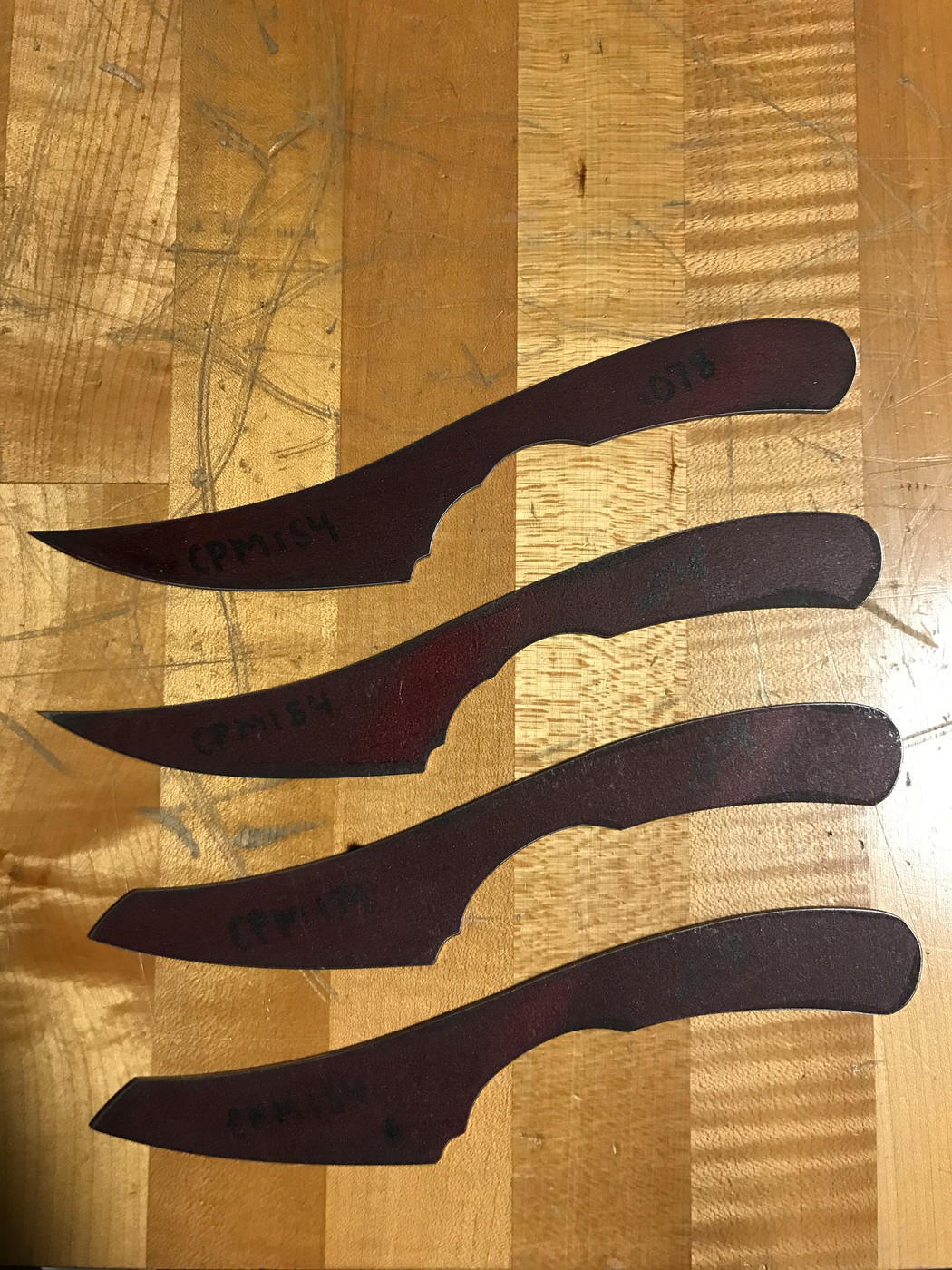Rangers .182" CPM154, one is a variant I am going to refer to as the soft tail Ranger for now, one of the regular Ranger profiles is going to Fiddleback Outpost.