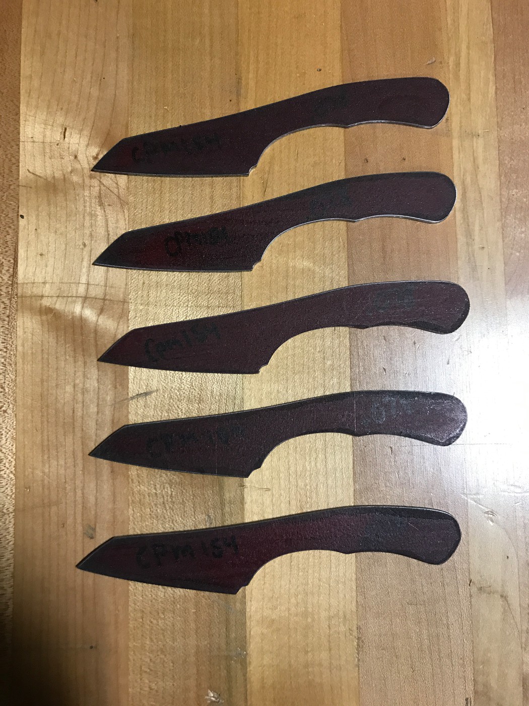 Giving S35vn a go again, I am pretty close to having this steel down pat. Last batch I heat treated I lost half of them to warpage, I am going to heat treat these is smaller quantities and a variety of thickness to zero in on the problem I was having. Either way I anticipate being able to complete a fair amount of these. The thickness is 3/32" 1/8" and 5/32"