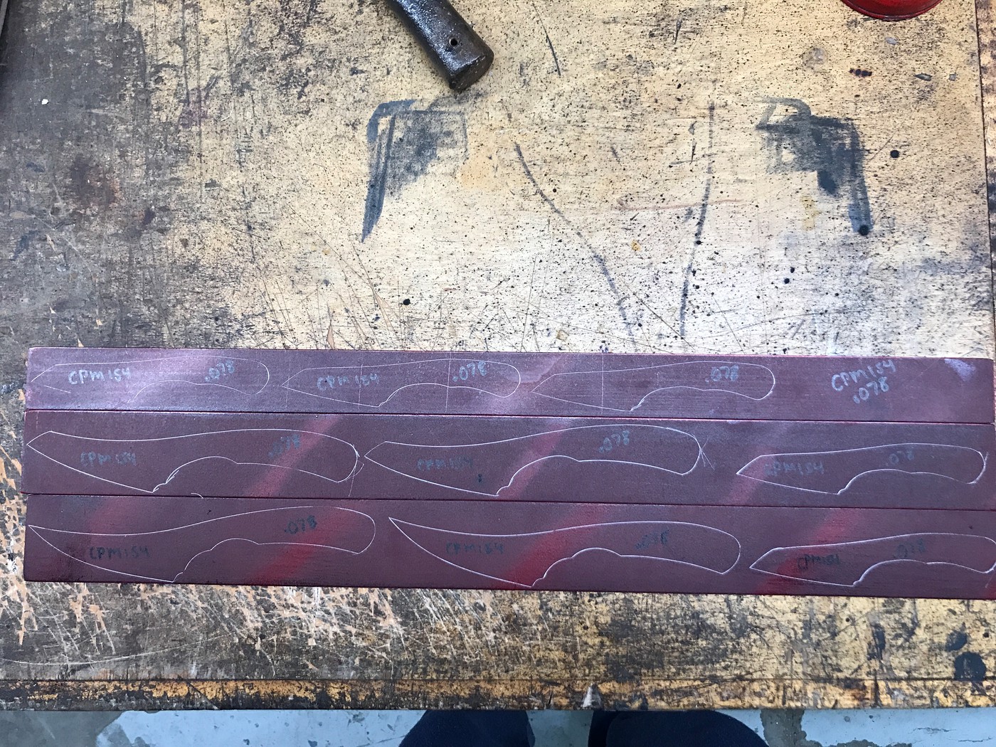 I showed both sides of the stencils because the pencil lines can play with your eyes, the plain side lets you take in the silhouette and overall profile, while the sketch side gives you a rough idea of my intentions for the handle and grind lines