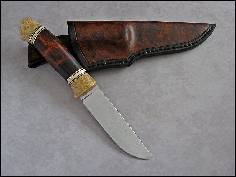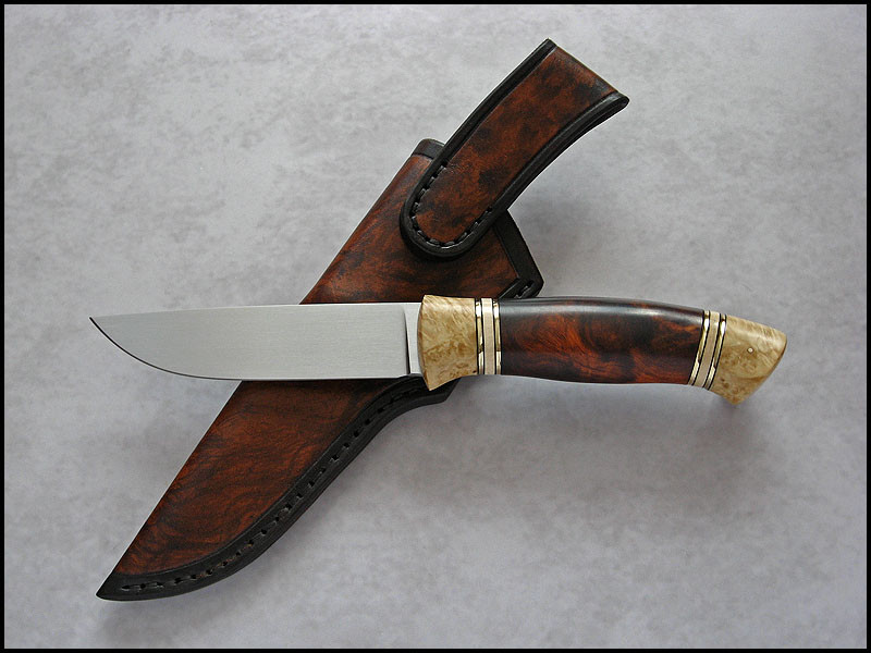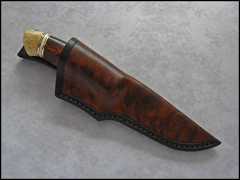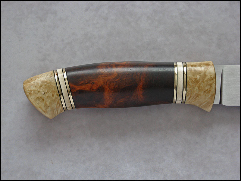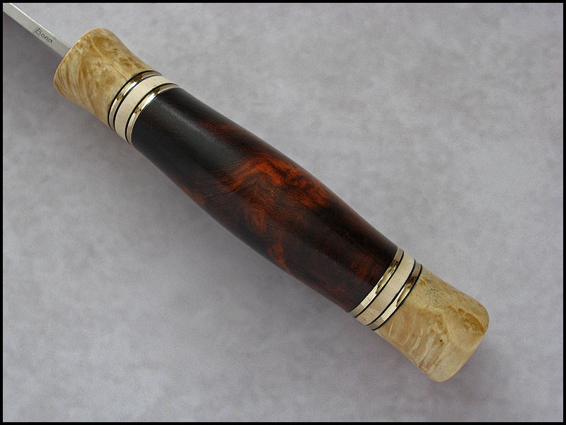 handle Ironwood, stabilized Box Elder, brass, bronze pin, thin black linen spacers, mamoth ivory
