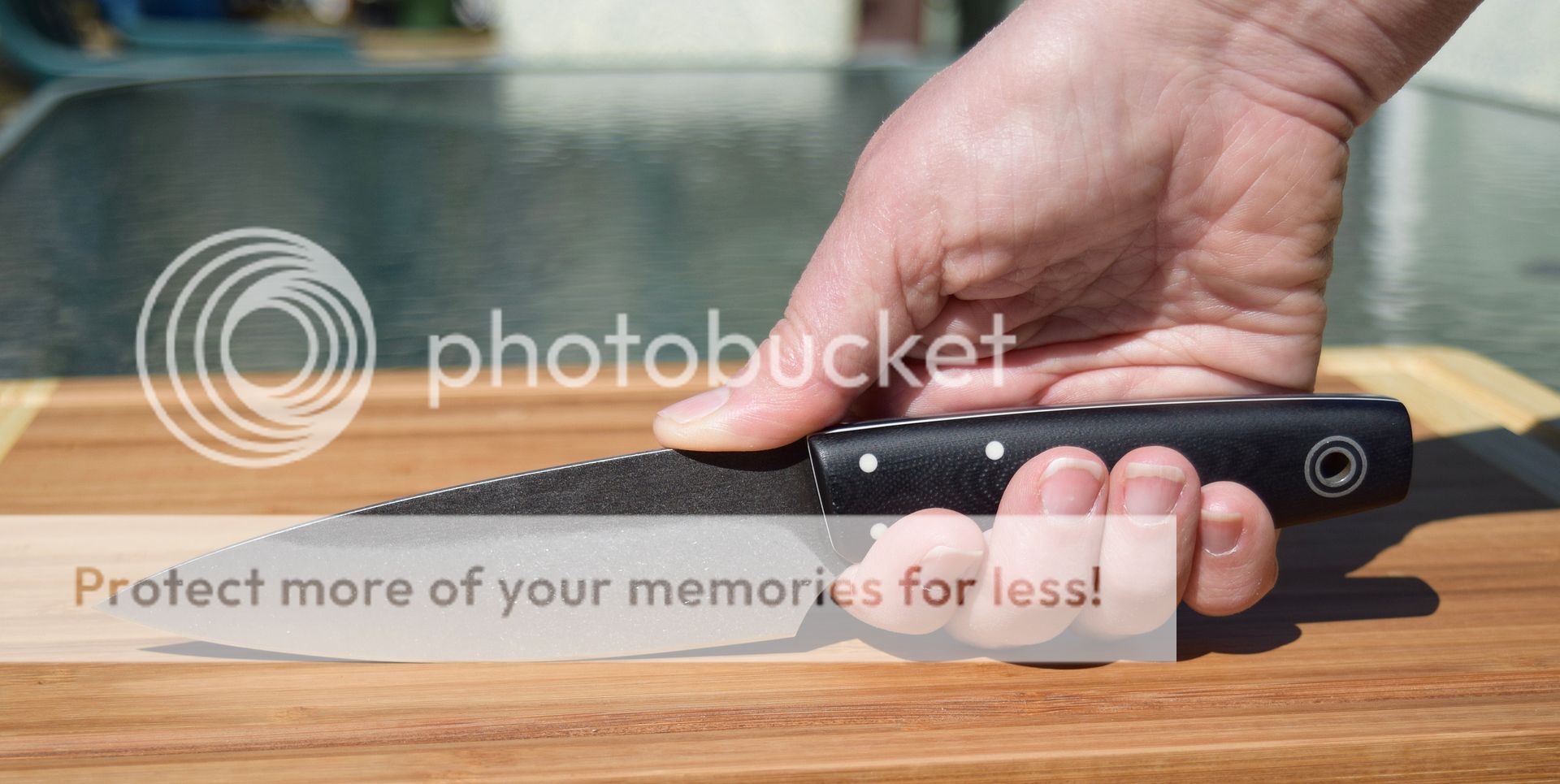 This is the modified grip I use for kitchen knives with minimal finger clearance to the cutting board.