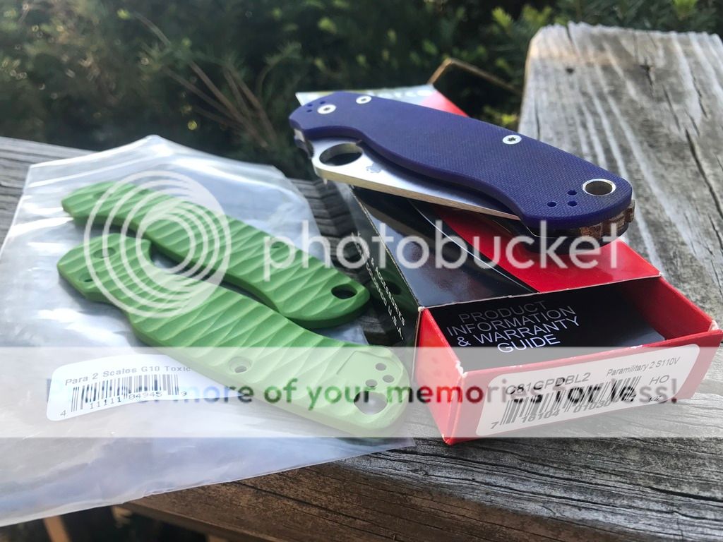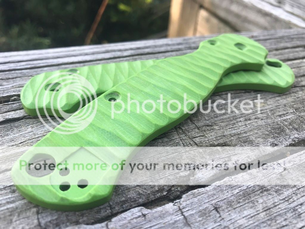 I am including a set of Allen Putman Toxic Green scales and a Natural Canvas Micarta backspacer.