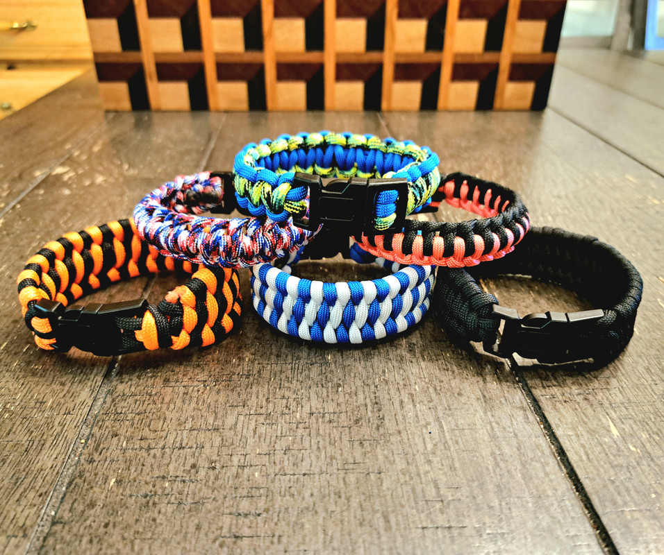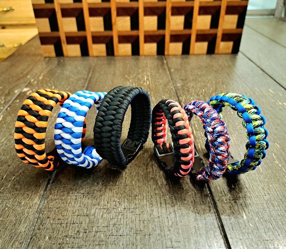 My boys made up a few more paracord projects. These bracelets are pretty slick. Great stylish way to carry a bit of paracord for an emergency.