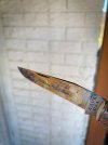 The blades were dipped in hot white vinegar for a few minutes. This turns the blades black with patina. I then rinse off the blades with water and let the blades air dry. Next I rub the blades lightly with very fine steel wool. Then I use the knife so the patina isn’t too even. That’s all. If it does not look right I repeat the process. This process works best for the Tidioute knives with the satin finished blades. With the Northfield polished blades the patina does not want to take as easily.How did you acquire such an even patina? That looks fantastic!