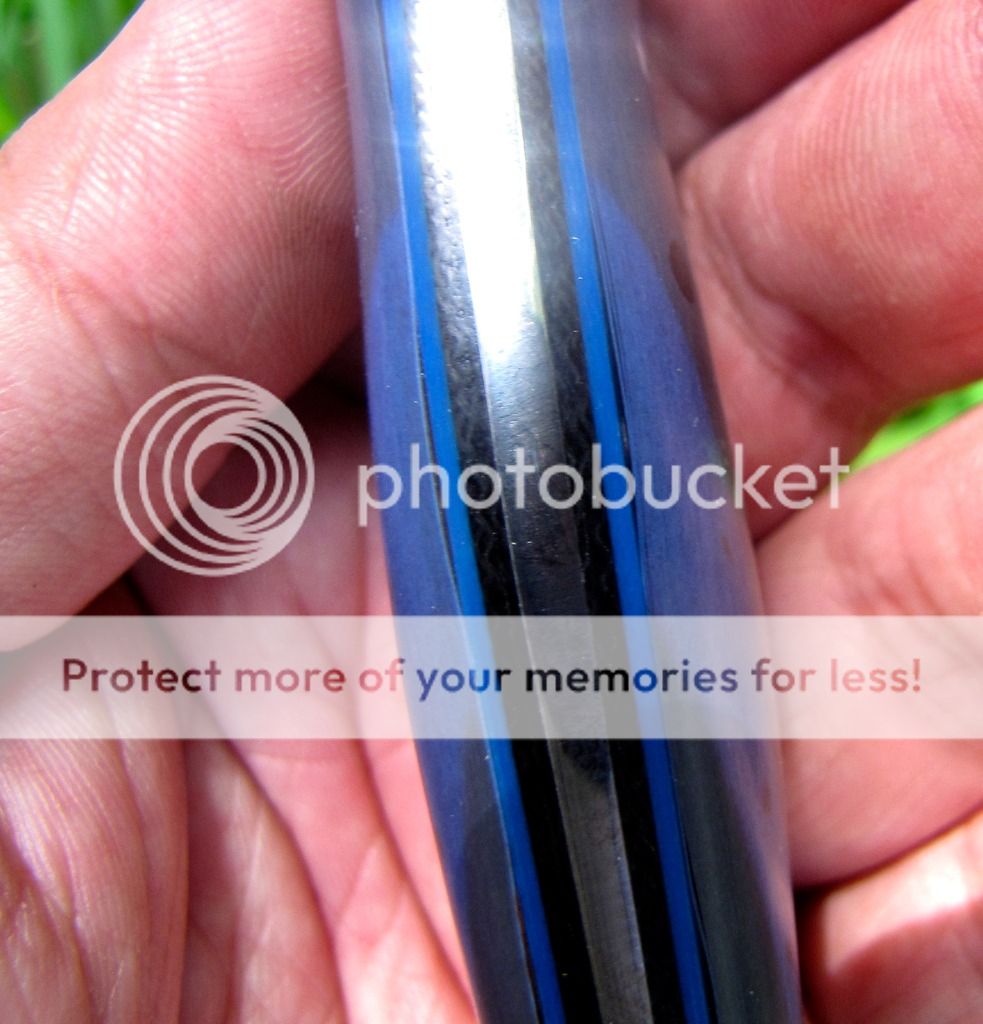 I do want all potential buyers to be aware that after shaping the handles there were a few gaps between the handle and pinstripe. These were all completey solid after shaping and are filled with the clear resin used to make the material. I didn't have to go back and fill these in. I believe that the laminate had a few waves in it that caused this during shaping. This material is completely new to me so I don't know if this is the norm or if I was just unlucky with my first piece. Overall I am satisfied and will be using more. As with all my knives this knife has a lifetime warranty. If there is ever a problem I will give a full refund or replace the knife.