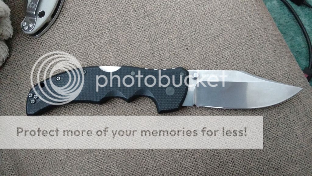 I just got a knife that fellow member Blues Bender was awesome enough to sell me at a great price, seriously he rocks, so I figure I would spread the love a little and post up another knife that gets no love from me because it hates me and my small hands. Up for grabs is my Cold Steel Recon 1 Clip Point. It bit me pretty hard last time I tried to open it because my fingers are simply too short. It can't really be flicked open.