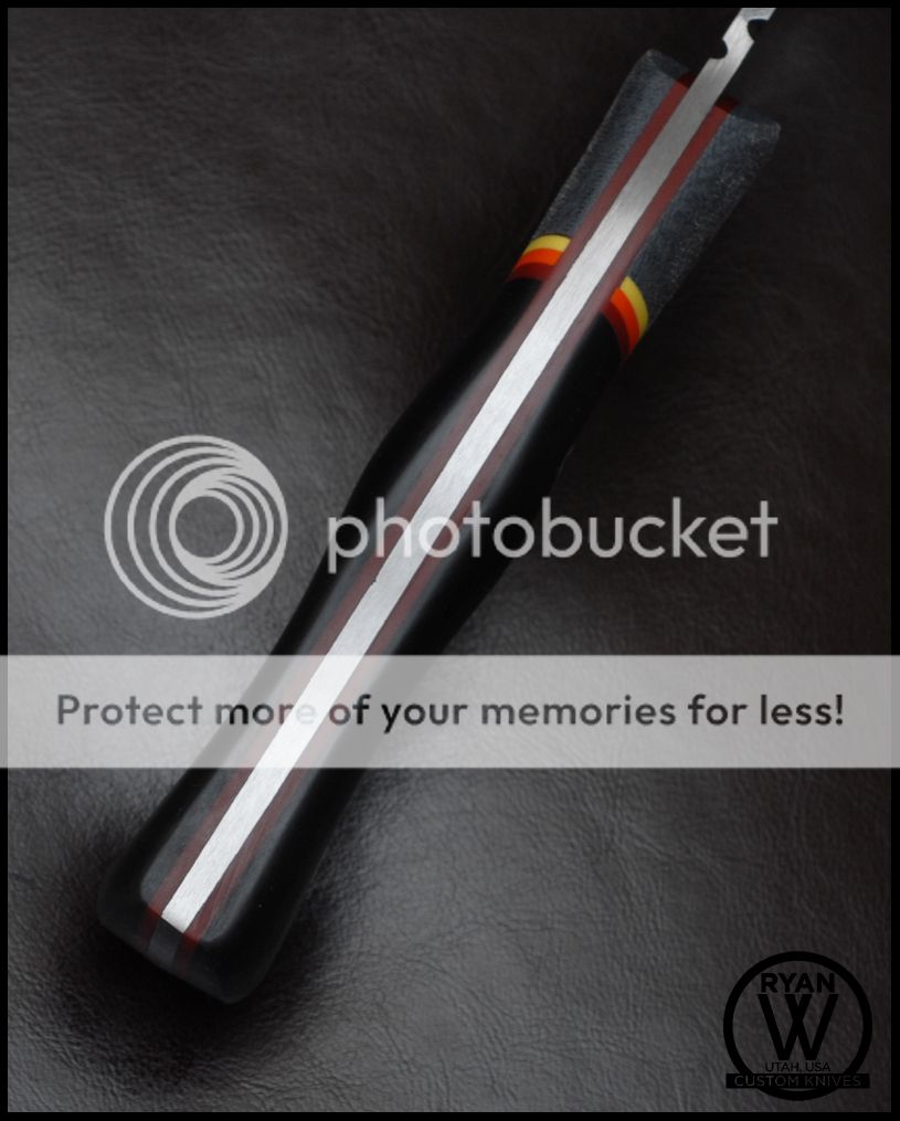 Handle: Black G10, Red/Orange/Yellow Spacers, Grey TeroTuf Bolster, Black G10 Liner