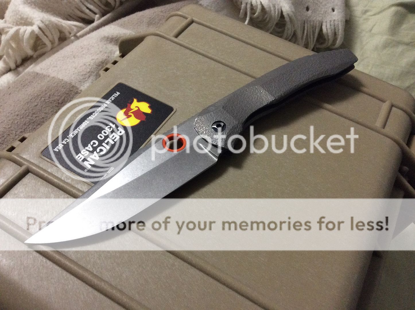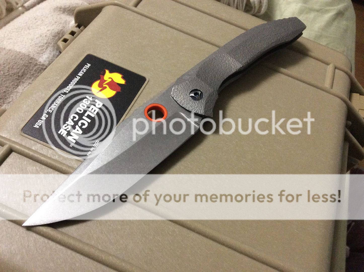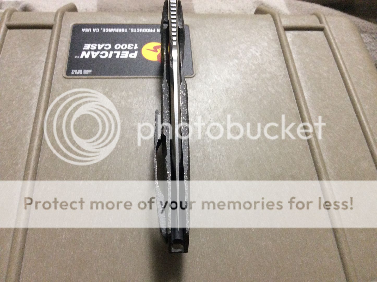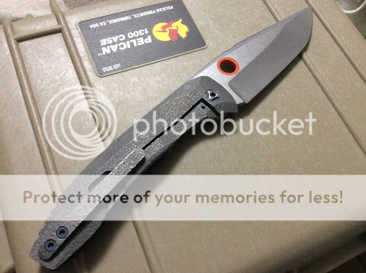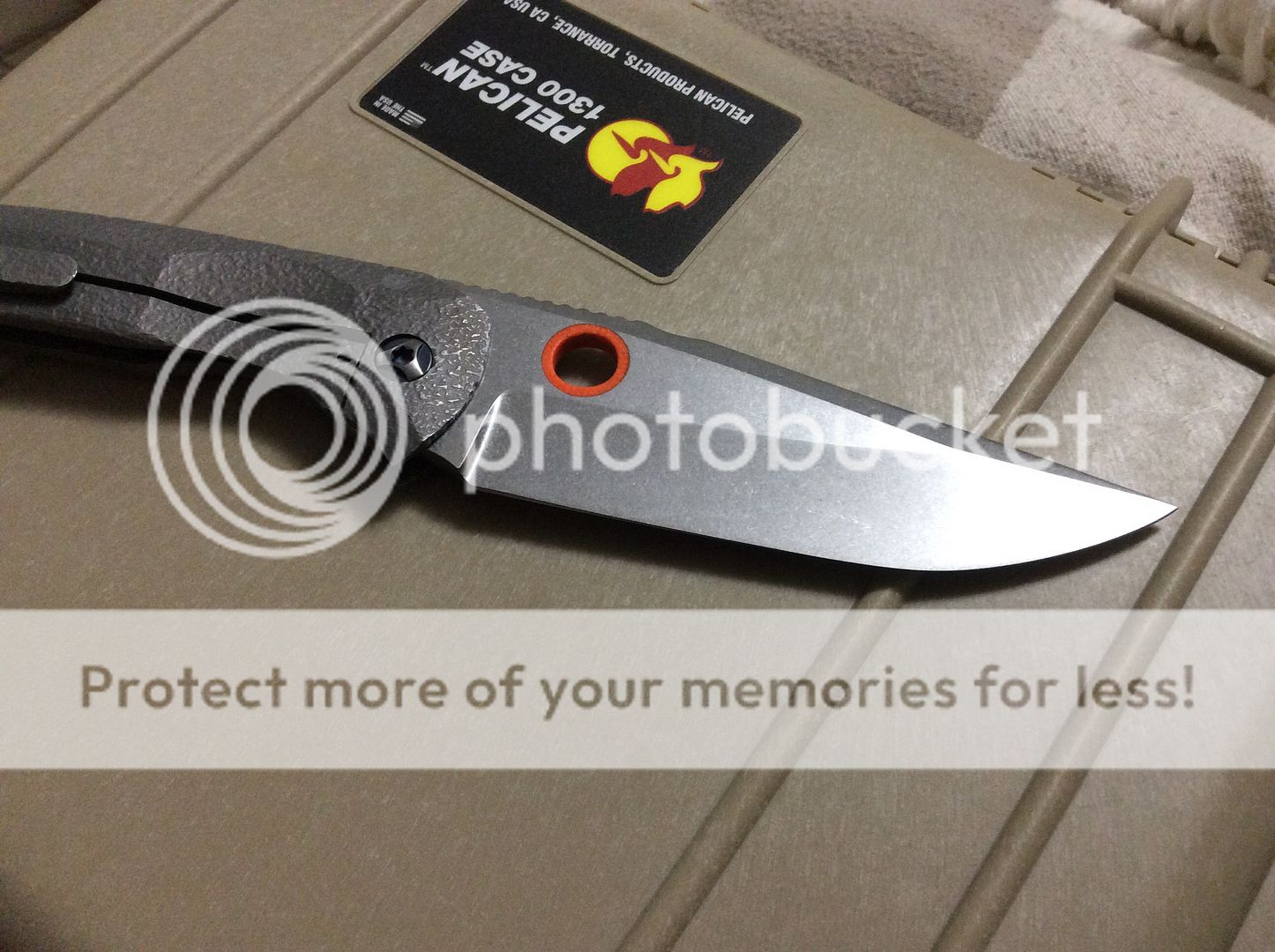 this piece features a polished and stonewashed CTS XHP blade with peter's custom hand textured finish on the frame of the knife. the blade has an orange G10 insert in the opening hole. the hardware and custom pivot have been anodized blue. Peter installed ceramic bearings on this piece. He has milled away all the unnecessary material from the frame so this nirvana is a lot lighter compared to the production nirvana, it also carries much slimmer in the hand. blade centering is perfect. lock up is rock solid with no lock stick whatsoever. knife has never been used to cut anything.