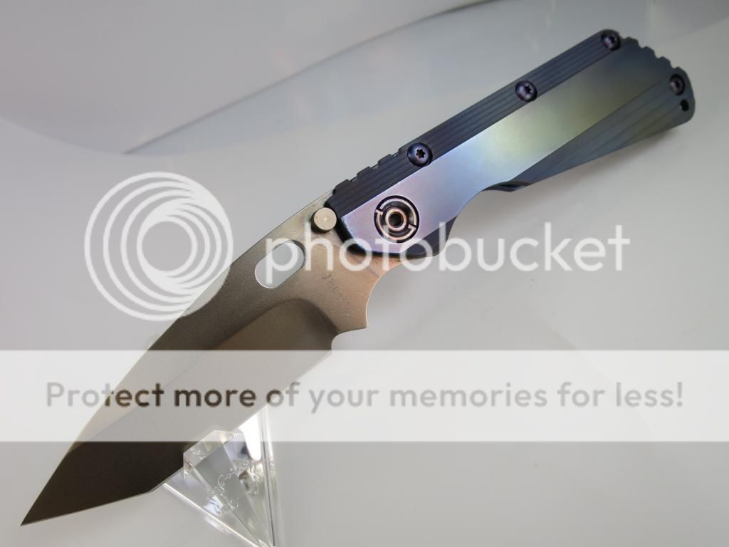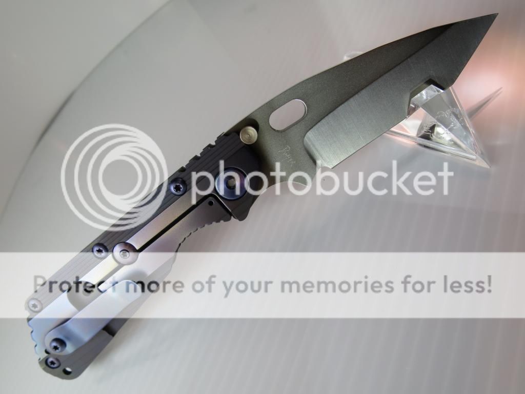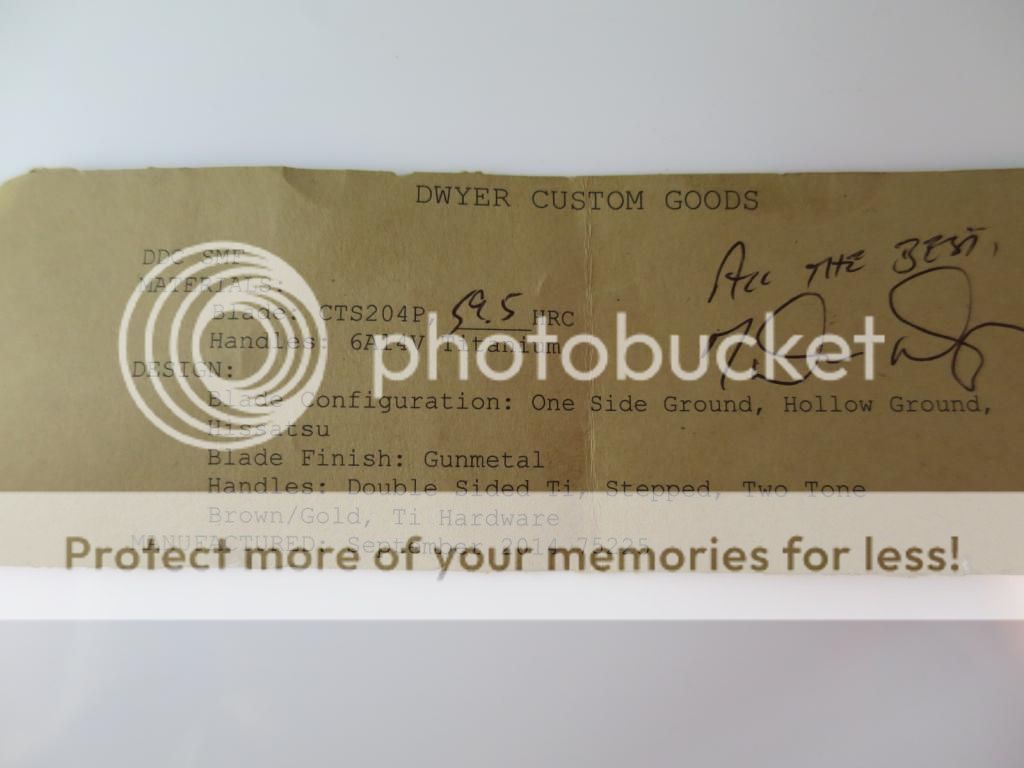 BNIB Duane Dwyer custom SnF folder featuring a double stepped Gunmetal 6A14V Titanium handle and a CTS204P high speed steel blade. The Hollow Ground Hissatsu blade sports a Gunmetal finish that is ground on one side. The knife excels in wear resistance and hardness (HRc 59.5 Tested by Duane) The titanium frame lock side is stepped/anodized like the front and given a Hinderer Lockbar Stabilizer to prevent overextension of the lock. "Dwyer" is hand engraved on the back of the blade. Includes a Black velcro pouch with a MSC patch and Specs sheet. The only time I took this out of the box is to take these pictures. $SPF Price includes delivery to US50. No trades, offers or international buyers. Standard time stamp rules.