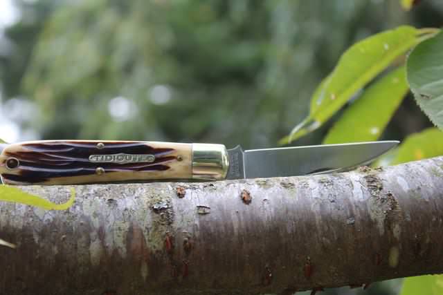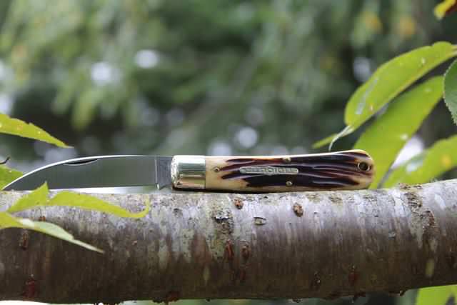 Fully agree, the writing should be correct for an open knife, a knife which is ready to cut. A knife being a knife. Always annoyed me. Or put the writing vertical like on the bolsters of the new 25's. That makes sense whether closed or open. Queen's shield being upside down is silly. It's a single letter, why not just align it vertically?The only question I have is who's bright idea was it to put shields with writing upside down? This has always annoyed me and if someone who made knives for me did this in the shop, the knife would not leave the shop till the writing was on the right way. The Tidiute above makes the problem jump out. Then after the first person did the shield that way, everyone else followed suit. Go figger! The proper orientation, to my eye, to display a knife is like the first photo, so you can imagine grabbing it and using it. I like pictures with the blade fully open so you get a better idea of blade/ handle ratio, and the angle of the cutting edge relative to the centerline of the knife.