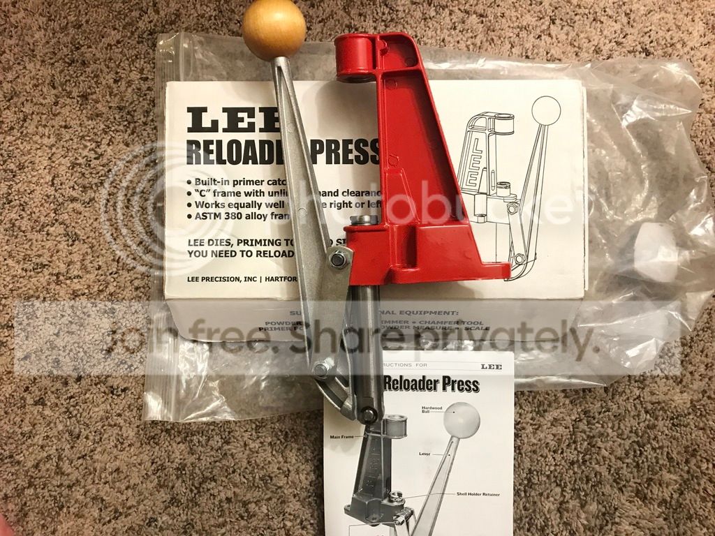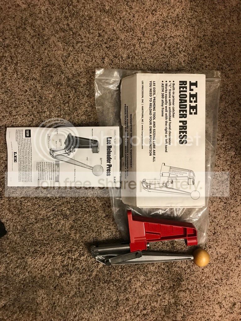 Excellent Lee single stage press #90045, has never been used. New in box with instructions. $25 shipped