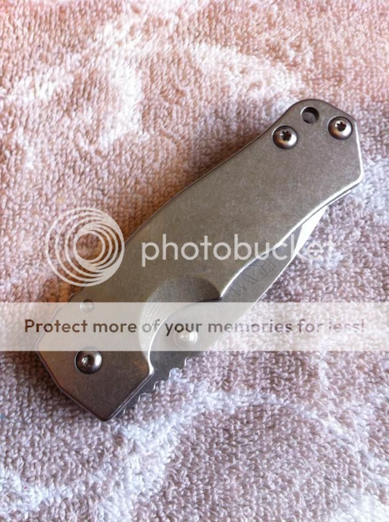 First is my grayman dua ti/ti stonewashed. Has been used and sharpened to a polished edge. Absolutely perfect example of grayman knives, perfect centering, super early lock up (15-20%) , and absolutely solid lock up in all directions. There are some scratches on the handle in one spot that you have to turn certain angles to really see. Itll make an AWESOME edc user, I just prefer bigger blades. $220 net