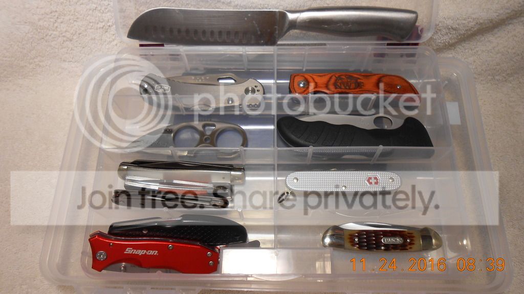 I found an old tool box out in the shed that I repurposed to keep my meager tactical folding knife collection in. Lined the drawers with some felt. Keep the boxes in the top. Not fancy as many of yours but it is better than I had. Cold Steel, Benchmade, CRKT, Kershaw and Colt, S&W many Mtech knives. No focus. LOL. I just buy what I like and can afford. I hope this isn't an