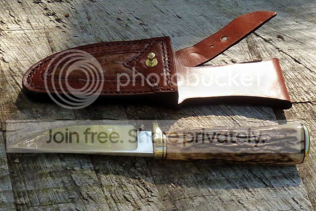 The first is my Bushfinger model. Its got a 4" blade, and 4.5" handle. The steel is 5/32" thick CPM 154, and the wood is stabalized Redwood burl. Convex sabergrind.