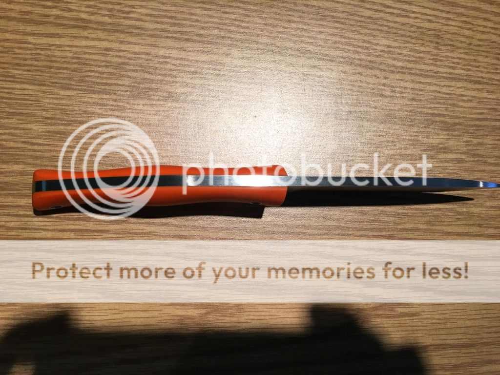 I took my spare BK10 out to the shop last week and ground down the spine to a drop point. I left the spine as ground for fire steel scraping. Also made a Kydex sheath to fit the new shape. The original edge shape is factory. I only worked the spine down. Suits me better now as I like the slimmer point