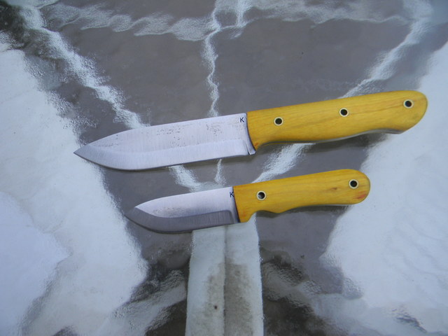 The little square cube behind the sharpie is an angle finder so I can set exactly what degree angle I want on each knife.